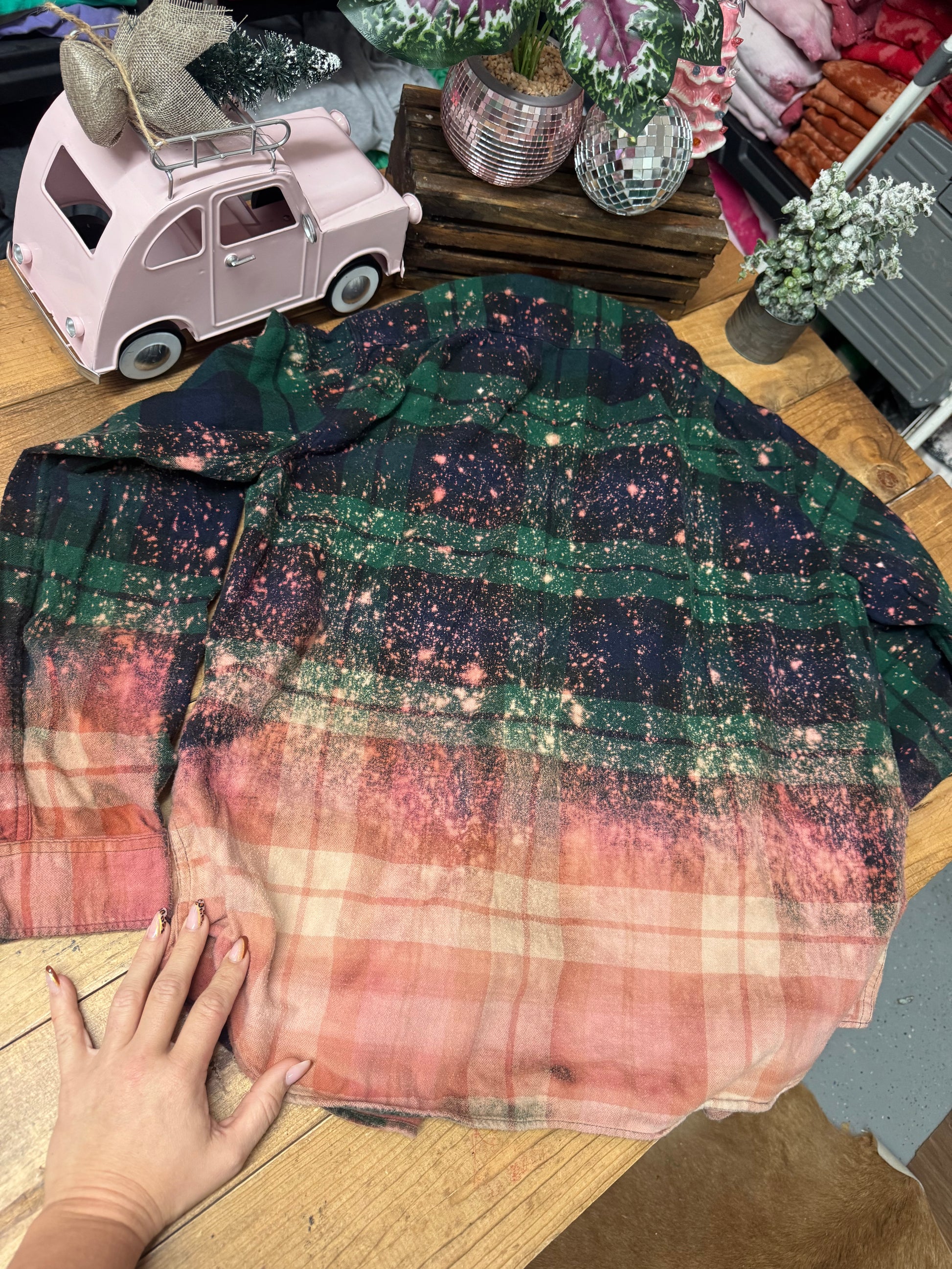 I try to hand thrift most of the flannels choosing ones that are perfectly broken in, perfect after bleaching for that lived in look!