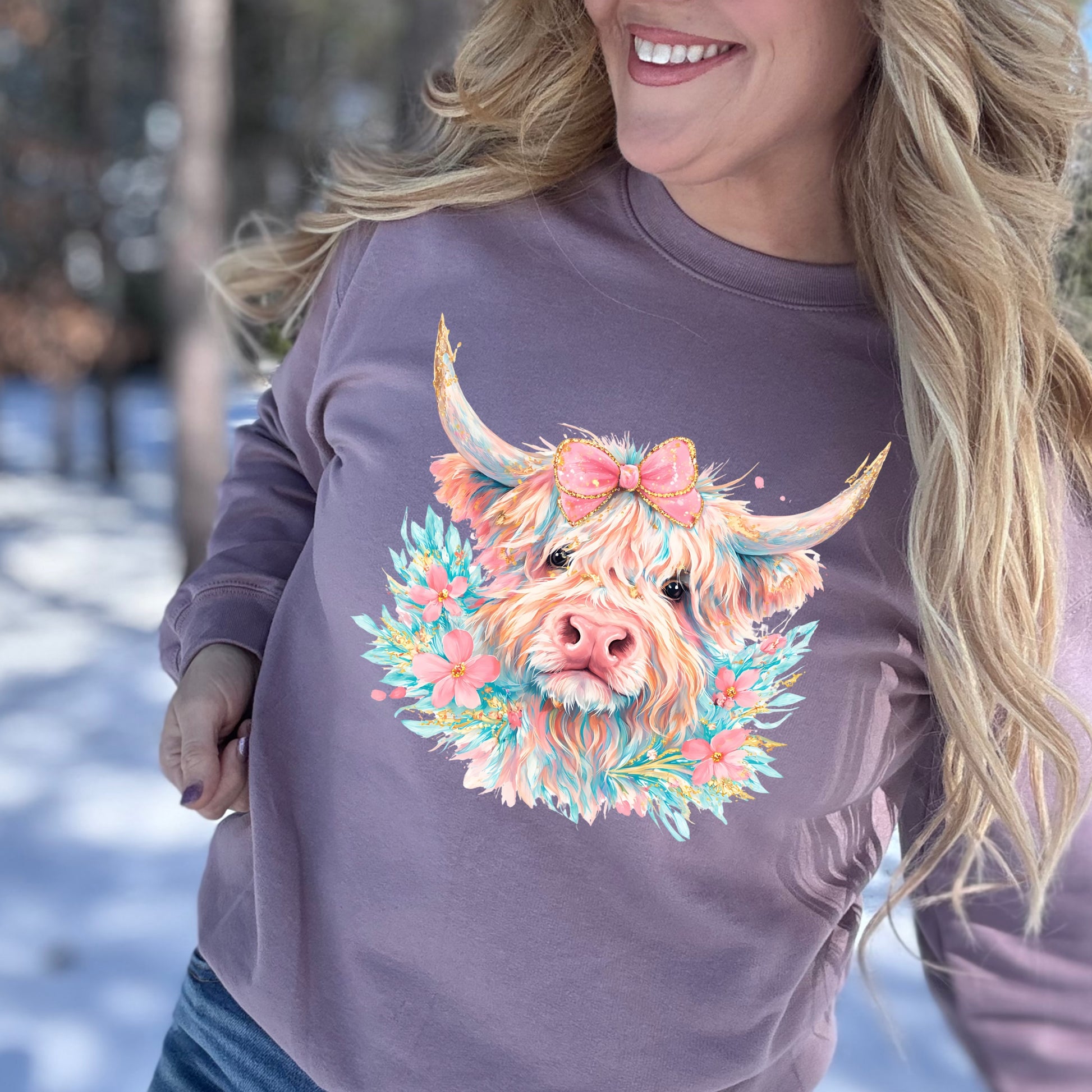 Pastel Brushstroke Highland Cow With Faux Glitter